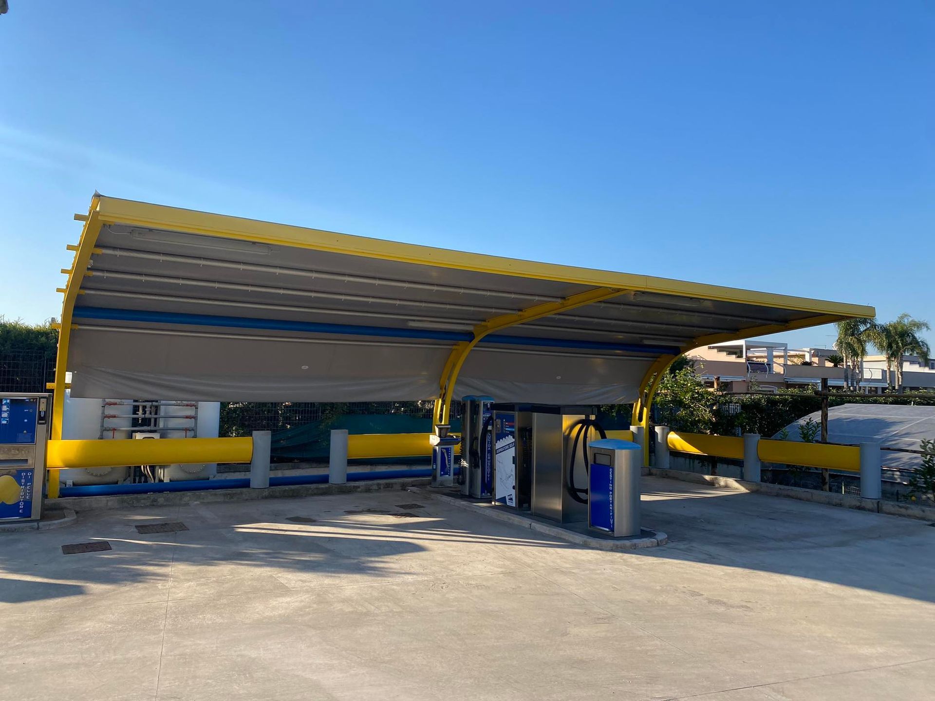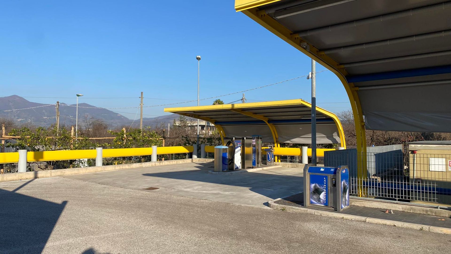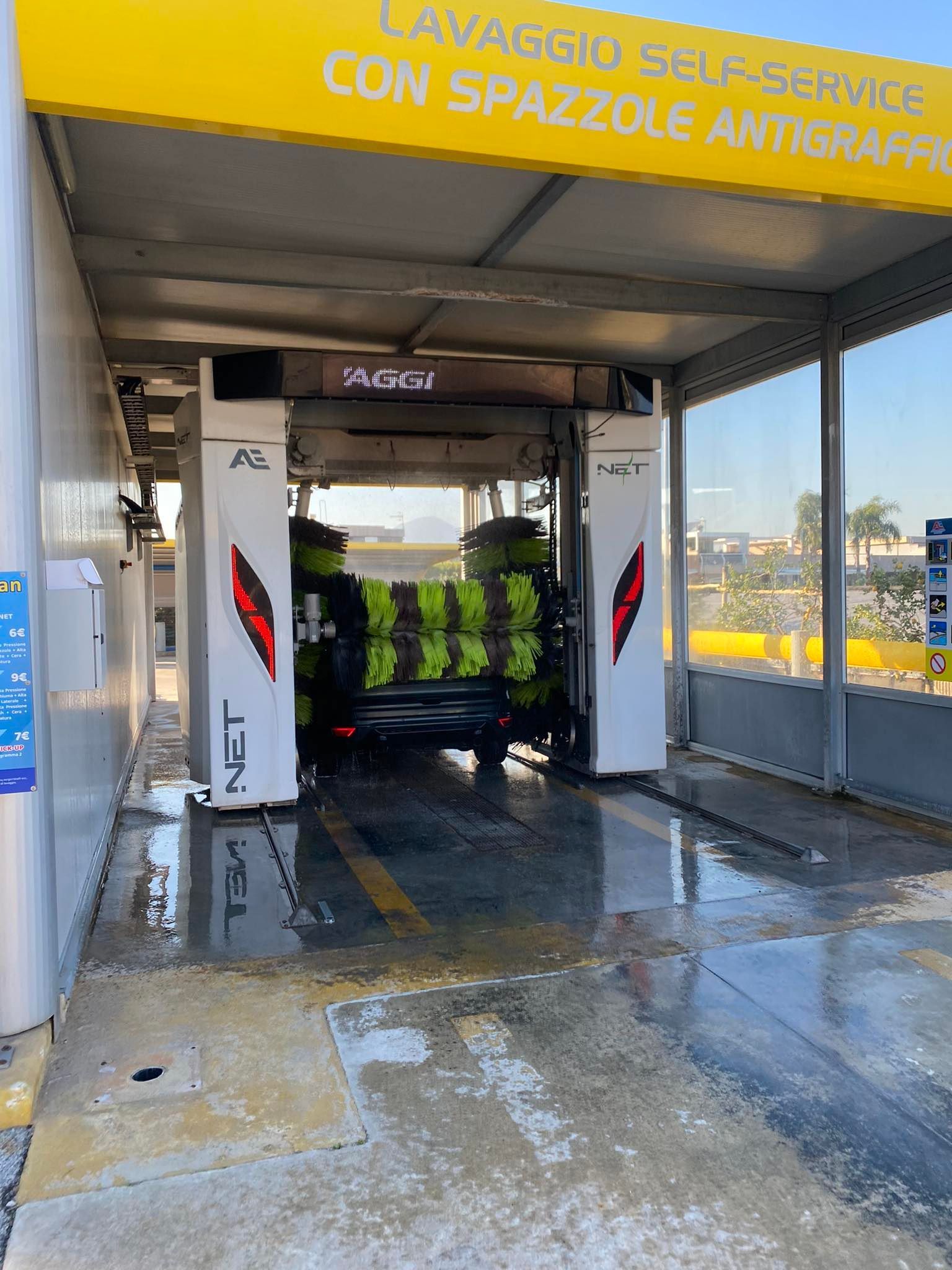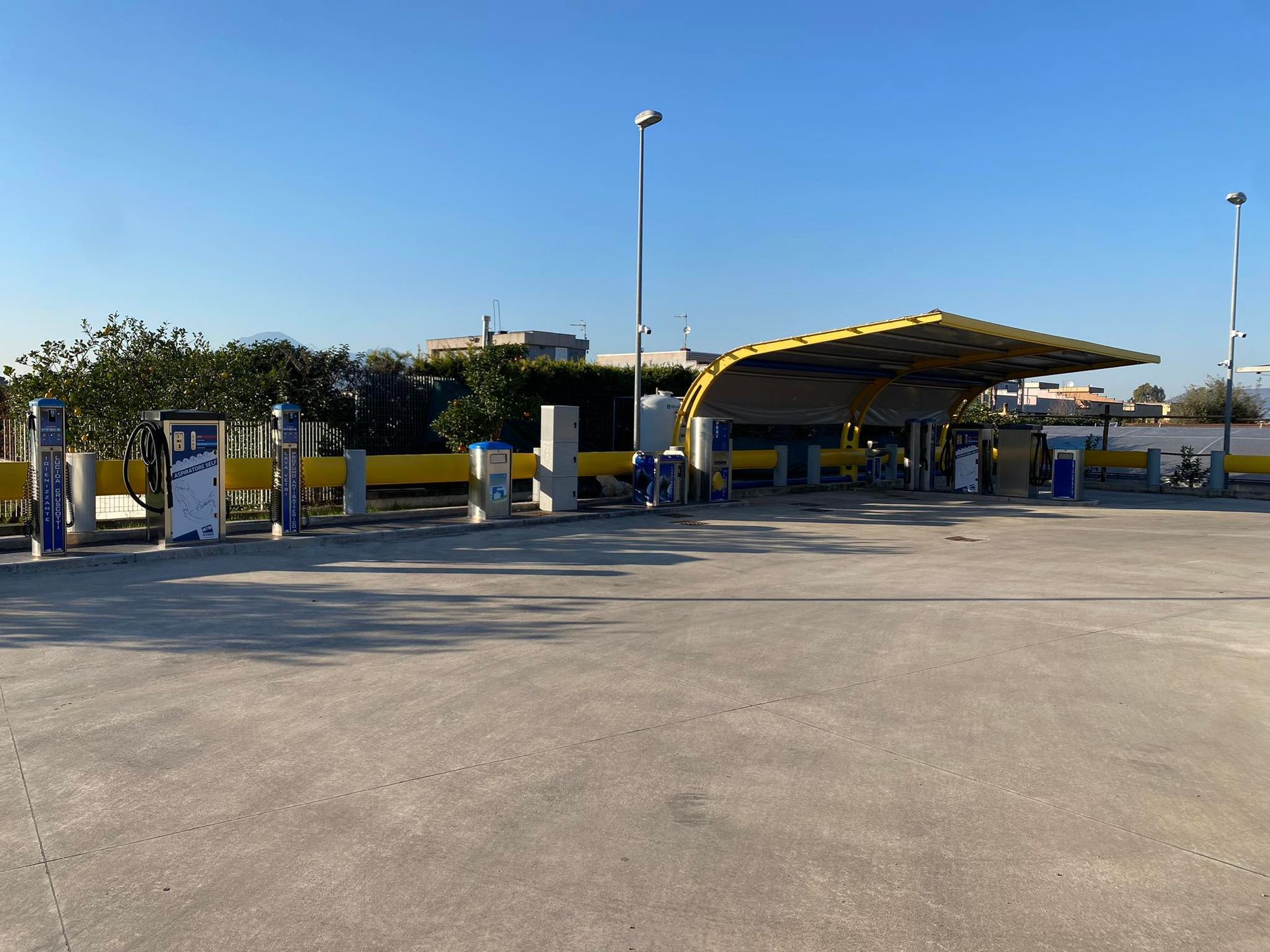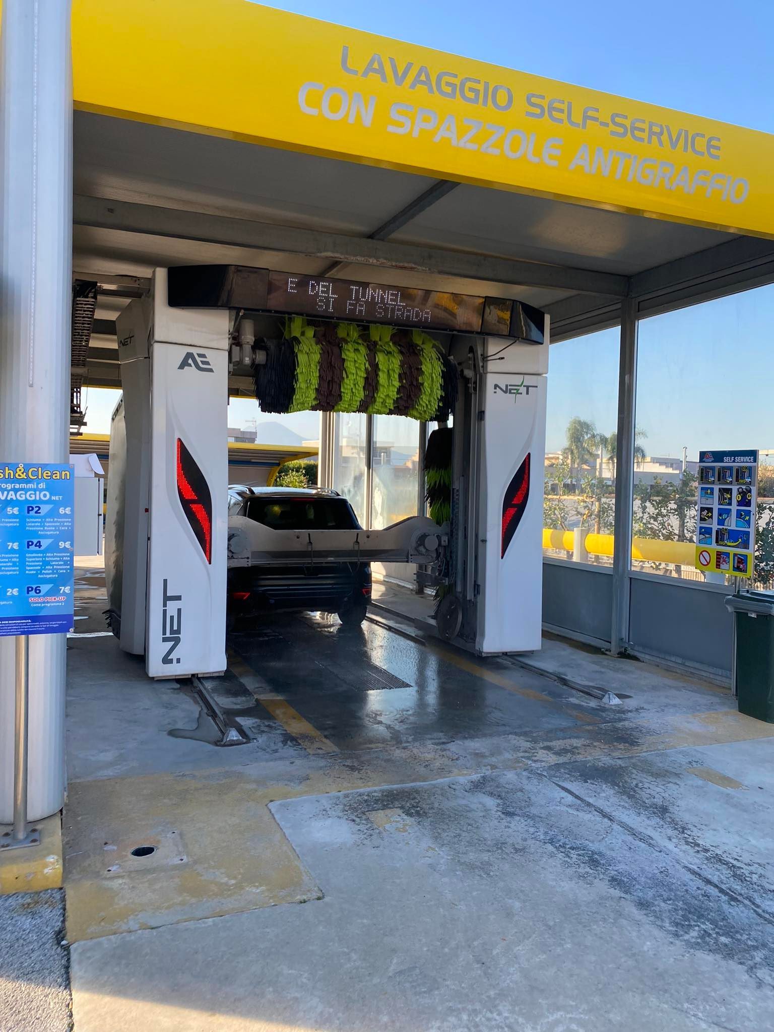 Di recente costruzione, il nostro impianto self-service è composto da 2 portali full optional per il lavaggio automatico con spazzole anti- graffio di ultima generazione, 4 piste self-service coperte per il lavaggio manuale, 2 distributori di pelli, 1colonnina lava interno,6 aspiratori self, 2 macchine lava tappeti, 6 colonnine nebulizzanti di igienizzante, lucida cruscotto, lava vetri, profumo antibatterico, igienizzante, aria compressa, nero gomme.